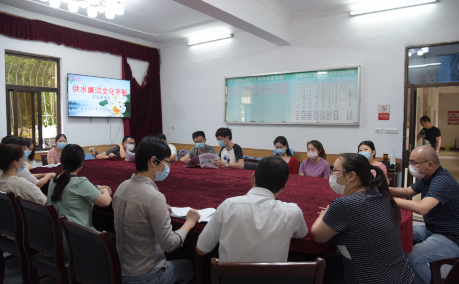 為縱深推進(jìn)國(guó)有企業(yè)“十進(jìn)十建”活動(dòng),爭(zhēng)創(chuàng)法紀(jì)宣教建設(shè)示范陣地,打造“廉潔供水”品牌。公司紀(jì)委組織編寫的《供水廉潔文化手冊(cè)》經(jīng)廣泛征求員工意見(jiàn),起于認(rèn)同、成于規(guī)范,已定初稿。該《手冊(cè)》理念行為識(shí)別系統(tǒng)確定了供水廉潔核心理念,規(guī)范了各崗位廉潔從業(yè)、優(yōu)質(zhì)服務(wù)行為,為安全生產(chǎn)、優(yōu)質(zhì)供水、服務(wù)社會(huì)奠定了政治基礎(chǔ)和紀(jì)律保障。圖為公司廉潔優(yōu)質(zhì)服務(wù)示范區(qū)·涼亭山水廠召開《供水廉潔文化手冊(cè)》征求意見(jiàn)會(huì),干部職工正在提出修改建議。