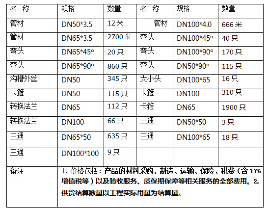 供貨范圍:給水內(nèi)外涂塑復(fù)合鋼管及相應(yīng)鋼塑管件
