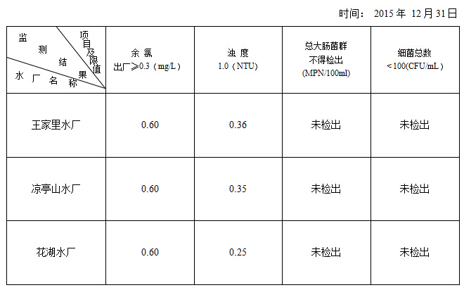 發(fā)布時間:2015-12-31 所屬欄目:水質(zhì)報告 點擊次數(shù):5252 返回上頁