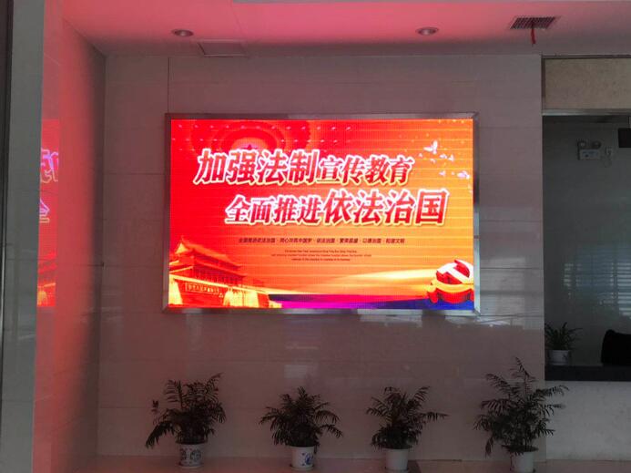 圖為LED屏正在滾動播放宣傳標(biāo)語