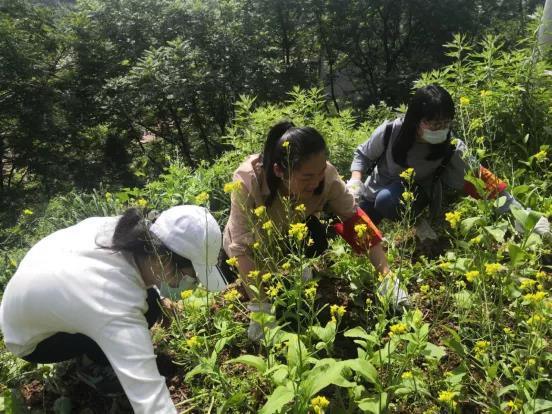 四月末的太陽沒有三伏天的炙烤,也沒有初春的和煦,是一股席卷磁湖兩岸,讓人難以拒絕的無限熱情。熱浪濤濤,夏風(fēng)襲人,干部職工們的斗志也隨之高漲,有序分工,協(xié)同合作,有的拿著鐵鍬鏟除根莖,有的揮舞鐮刀割除荒草,有的提著竹籃清撿垃圾,有的干脆“雙手齊下”拔除荒草、荒樹……經(jīng)過大家的不懈努力,社區(qū)環(huán)境得到有效改善,社區(qū)形象得到提升。