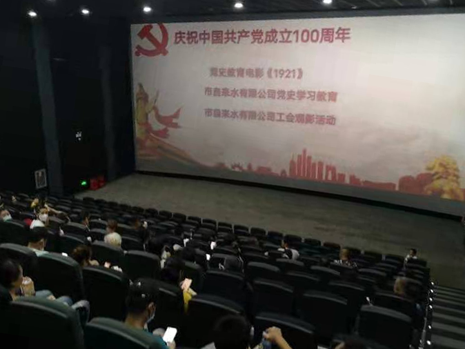 為慶祝中國共產(chǎn)黨成立100周年,引領(lǐng)公司廣大干部職工深入學(xué)習(xí)黨史,牢記黨的初心使命,7月3日—4日,市自來水有限公司工會分批次組織全體黨員干部職工觀看獻禮建黨100周年的歷史劇情電影《1921》。