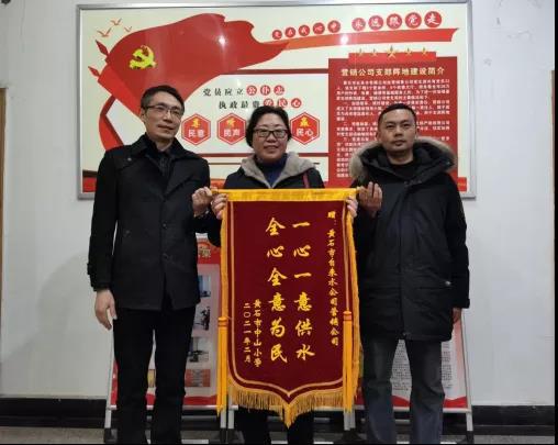 2月26日,中山小學向市自來水有限公司求助,因新建教學樓,用水量突增,導致水壓降低,嚴重影響學校正常用水。市自來水有限公司立即組織人員趕赴現(xiàn)場,勘察情況,分析原因,提出解決方案,并加班加點免費為學校安裝戶內(nèi)加壓水泵,解決了學校的用水難題,保障了學生安心上課。其后,中山小學送來錦旗:一心一意供水,全心全意為民。